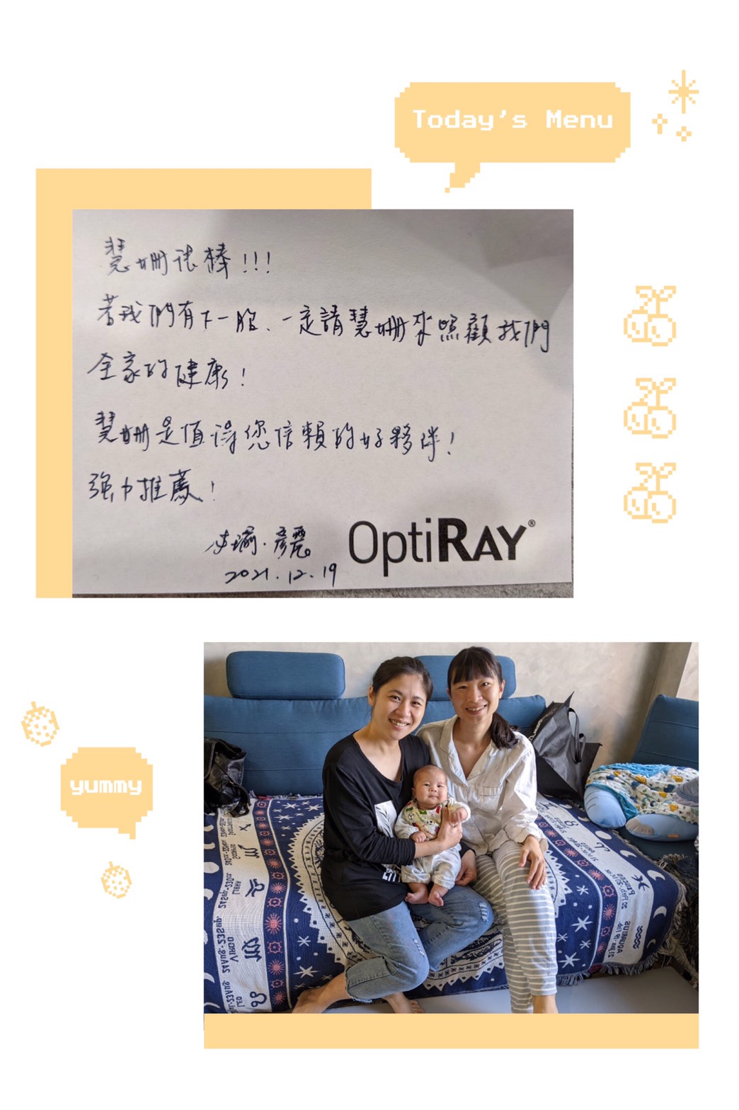 媽咪感謝函 好站連結 產後照顧 哺乳問題 手工母乳皂 培訓課程 美味月子餐 育兒新知 海外坐月子 首頁 > 媽咪新知 媽咪感謝函 汐止必瑜媽咪強力推薦慧姍月嫂 2022.01.06 謝謝汐止必瑜媽咪的強力推薦,來自台中霧峰24小時年輕的慧姍月嫂是值得信賴的坐月子好夥伴,貼心細心專業負責,指定率高,檔期最少往後排半年以上,預約請早唷! Http://www.yes-mami.com.tw/contact.php 手機:0929-247246, 0900-163888, 02-22401880 Line ID: 0900163888或 0929247246