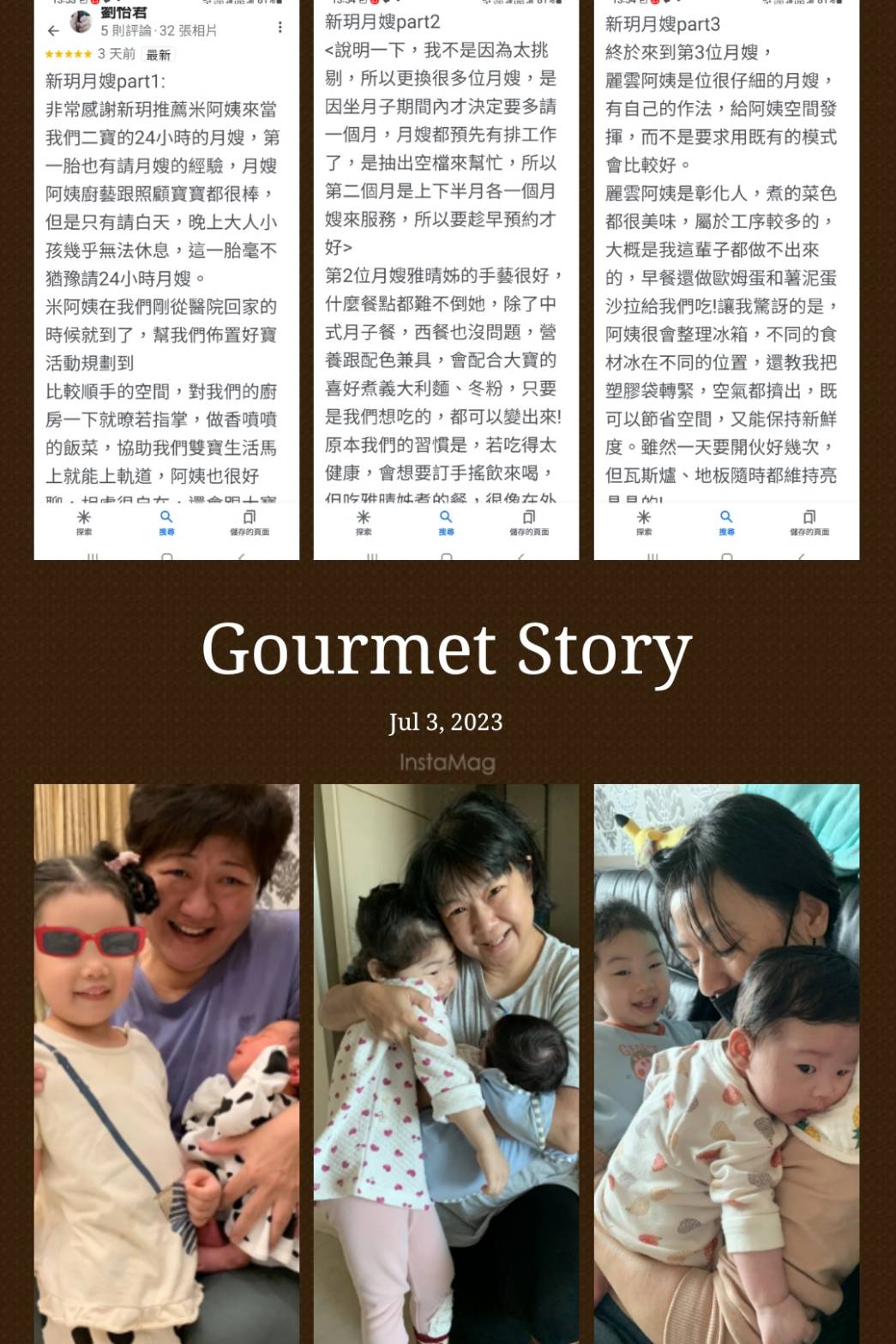 謝謝三重劉小姐月子結束經過半年再追加評論,把米阿姨後面的雅晴阿姨和麗雲阿姨也詳列出來(60天由3位月嫂銜接),三位月子阿姨的表現可圈可點,各有特色各展所長,充份顯示新玥月嫂素質整齊,專業一致,當然要感謝劉小姐是好照顧媽咪一百分,才能讓月嫂得以發揮專業和效率!能為劉小姐服務充滿成就感並且深感榮幸!!
